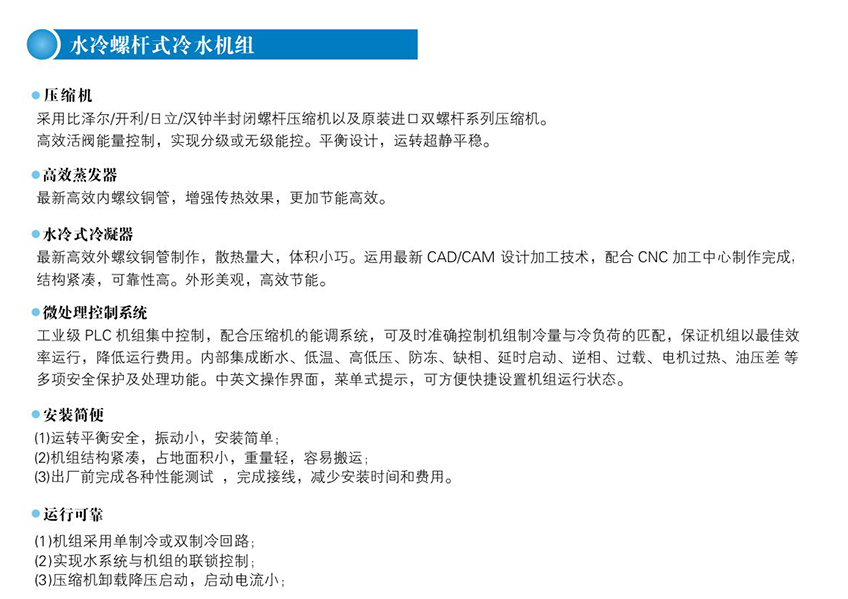 食品工業(yè)用冷水機:冷水機用于各類食品加溫后高速冷卻,使之能適用入罐及裝瓶要求,另外還有各類發(fā)酵食品需要不同的冷卻溫度以穩(wěn)定發(fā)酵需要,提高發(fā)酵產(chǎn)品,保證發(fā)酵質(zhì)量,同樣也使用于制藥業(yè)、化學(xué)工業(yè)制冷設(shè)備。