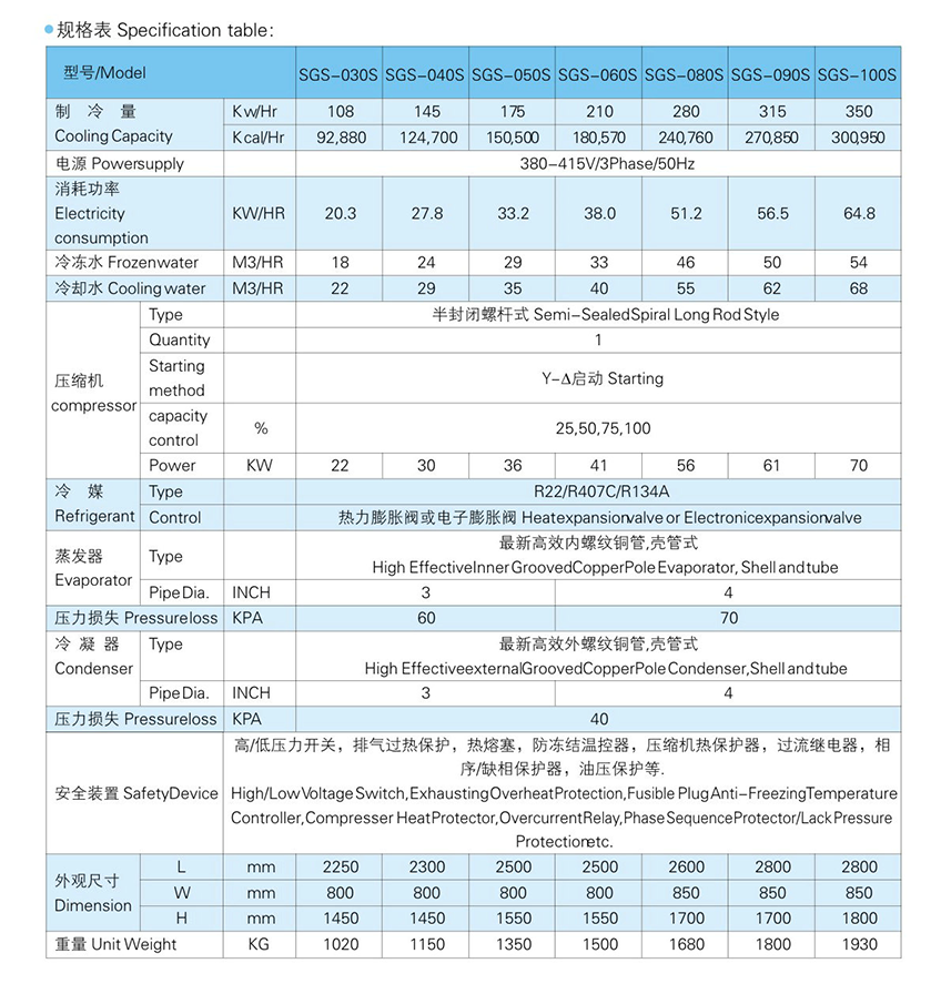 SGS-030S 至 SGS-100S 螺桿式冷水機組